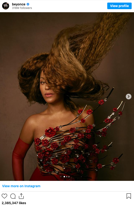 نفر بعدی لیست ما، بیانسه است که پست مربوط به اعلام بارداری او تا مدتها پرلایکترین پست تاریخ اینستاگرام بود. اکانت او بیشتر شامل تصاویر و ویدیوهای از اجراها و کارهای حرفهای او است و در این بین میتوانید تصاویری از زندگی شخصیاش هم پیدا کنید.
