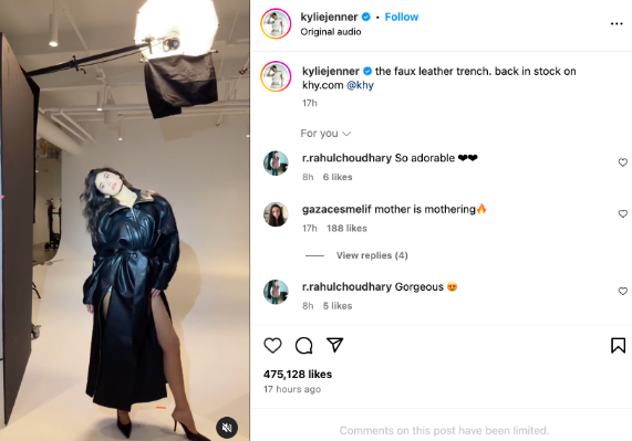 معروفترین و پرفالوورترین عضو لیست معروف ترین پیج های اینستاگرام ما، کایلی جنر است که در بازه زمانی خاصی توانسته بود مقام اول پرلایکترین پست تاریخ اینستاگرام را به خودش اختصاص دهد. در اکانت او میتوانید تصاویری از کار و زندگی شخصیاش پیدا کنید.